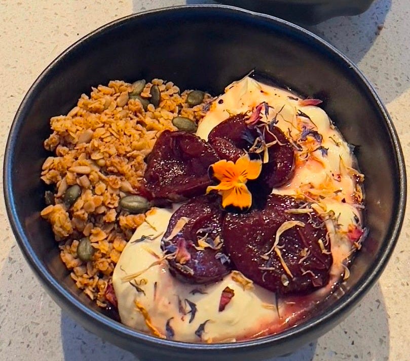This recipe feels like a fitting place to start our brand new Bibi’s Café Substack, as granola has been a staple on the menu in Bibi’s since the very beginning. Our first recipe was a very simple one but it has evolved, along with everything else, over the years, as we have learnt what really works and ultimately what our customers love. Over the years, I have tried and tested numerous granola recipes, including a cacao - buckwheat version that we loved, but our customers…not so much! And I have to admit - this is something I have really struggled with over the years. Every now and then I’ll come up with a recipe or an idea that I’m so certain is “the one”, the dish people will fall in love with. I spend time testing it, tweaking it and am so excited to get it out there on the menu…only for it to land with a quiet thud. It can be oddly disappointing, even a little hard on the ego, when something you have been so sure about doesn’t quite meet the world the way you imagined. But I’ve learnt that part of the joy (and challenge!) of running a café is accepting that you can’t always predict what people will respond to. Sometimes the flavours that you love are not the flavours that others are wanting. And this is ok. It challenges me that bit more and keeps me curious, humble and always experimenting. In the end, the recipe that I am sharing with you today, is the one I keep coming back to, time after time, and is now a firm staple on our menu in Bibi’s.
