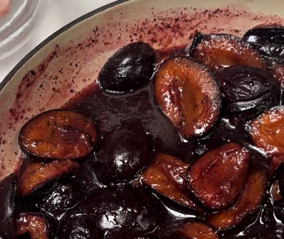 Bake in the oven for about 15 - 20 minutes. You want the plums to be just soft but not falling apart. Remove the dish from the oven and allow to cool.